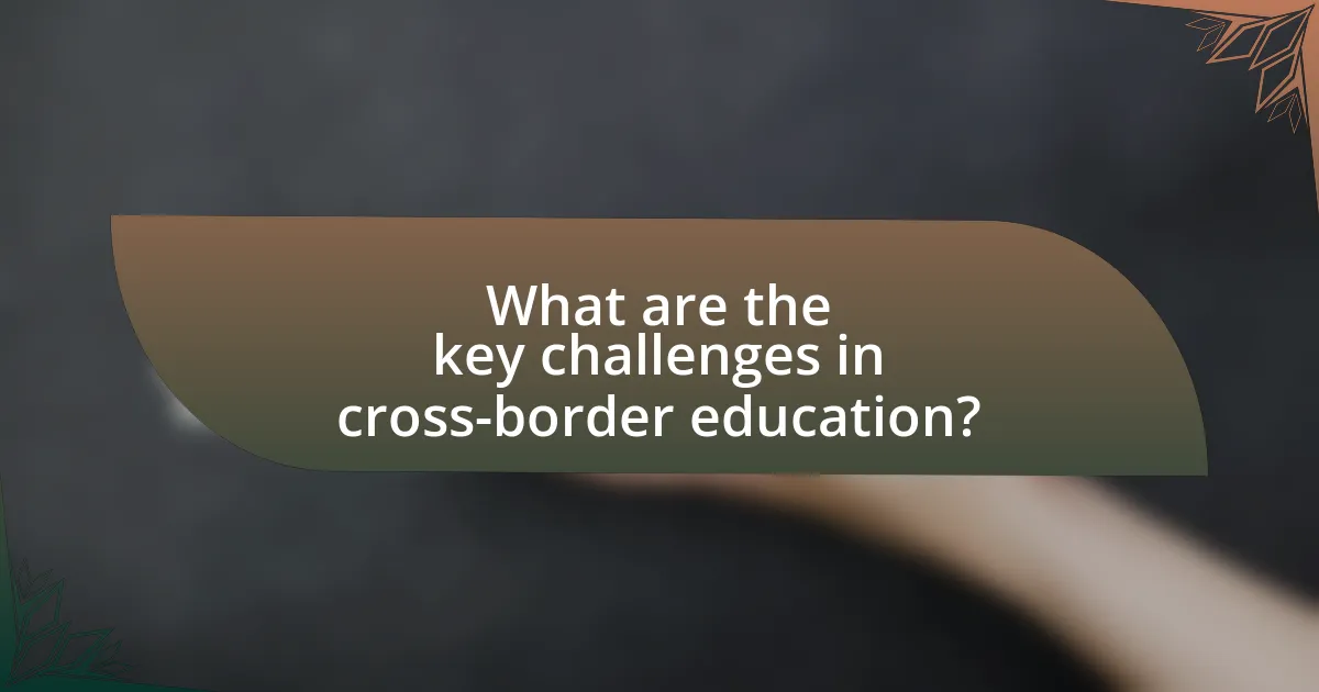 The key challenges in cross-border education include regulatory differences, cultural barriers, and quality assurance issues. Regulatory differences arise from varying national education policies, which can complicate the recognition of qualifications and credits across borders. Cultural barriers often hinder effective communication and integration between international students and local communities, impacting the overall educational experience. Quality assurance issues stem from the lack of standardized metrics to evaluate educational programs internationally, leading to concerns about the credibility and value of cross-border qualifications. These challenges are supported by research indicating that 70% of institutions face difficulties in navigating regulatory frameworks, and studies show that cultural misunderstandings can significantly affect student satisfaction and retention rates.